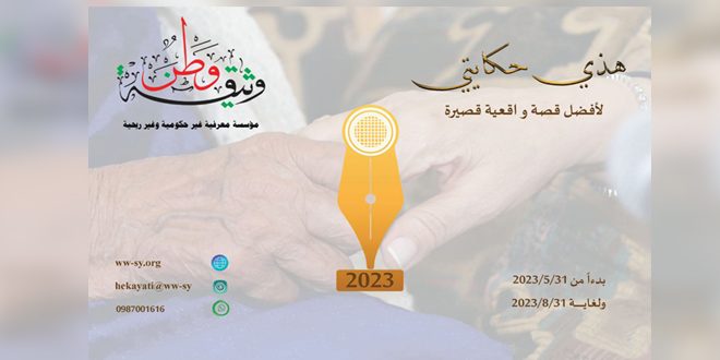 انطلاقاً من رؤية مؤسسة “وثيقة وطن” وأهدافها المتمثلة بنشر الوعي بأهمية مشاركة الناس في كتابة تاريخنا بأيدينا، والوصول إلى قصص الناس مباشرة بغية تسجيل وقائع الأحداث التي مروا بها وتفاصيلها، وبهدف دمج مختلف الفئات العمرية وشرائح المجتمع في عملية التأريخ عبر رواية قصصهم وذكرياتهم، أعلنت المؤسسة عن فتح باب المشاركة في مسابقتها السنوية “هذي حكايتي 2023” لأفضل قصة واقعية قصيرة.