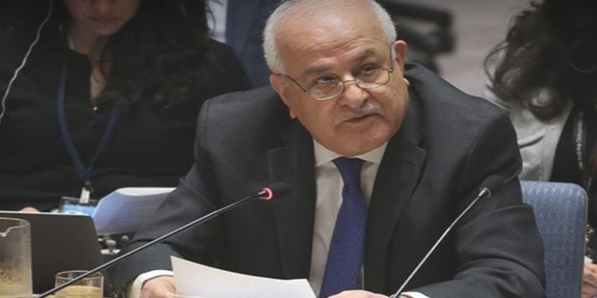 طالب مندوب فلسطين الدائم لدى الأمم المتحدة رياض منصور المجتمع الدولي باتخاذ إجراءات عاجلة وملموسة لتوفير الحماية للشعب الفلسطيني، ووضع حد لإفلات سلطات الاحتلال الإسرائيلي من العقاب على جرائمها بحقه.