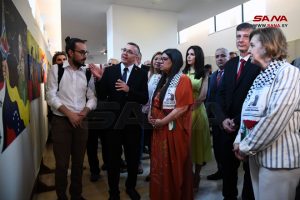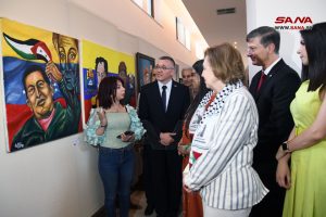 تحت عنوان “تشافيز وبوليفار مرحلتان وفكر واحد” أقامت سفارة جمهورية فنزويلا البوليفارية بدمشق معرضاً لمسابقة الرسم الوطنية بمشاركة فنانين سوريين، وذلك في المتحف الوطني بدمشق.