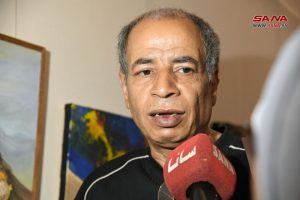 الفنان التشكيلي فتحي صالح حسين شارك بالمعرض بلوحة تحكي عن الثورة الفنزويلية والثورة الفلسطينية والتعبير عن التفاصيل الكثيرة التي تتشابه فيها الثورتان وهو النضال ضد المستعمر.