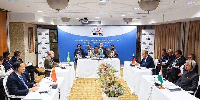 وجاء في بيان صادر عن الاجتماع الوزاري للمجموعة الذي عقد في جمهورية جنوب إفريقيا وفق ما نقلت وكالة نوفوستي الروسية: إن “الوزراء يرحبون بعودة سورية إلى جامعة الدول العربية، ويؤكدون دعمهم للجهود الرامية إلى حل سياسي وتوافقي يحترم سيادة ووحدة أراضي سورية”.