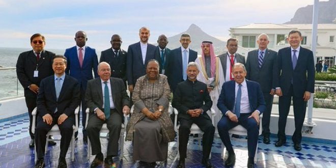 أجرى وزراء خارجية دول مجموعة بريكس (البرازيل وروسيا والهند والصين وجنوب إفريقيا) اجتماعاً اليوم في مدينة كيب تاون مع وزراء خارجية أصدقاء بريكس، الذين يمثلون 12 دولة أخرى من جنوب الكرة الأرضية.