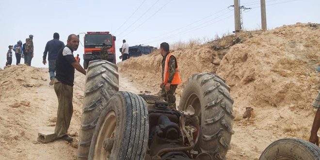 ووقع الحادث الأول جراء تدهور بولمان قرب منطقة هريبشة على طريق دير الزور تدمر، فيما كان الثاني بسبب انقلاب جرار عائد لمجلس المدينة كان يقوم بنقل القمامة.