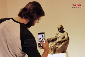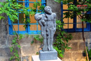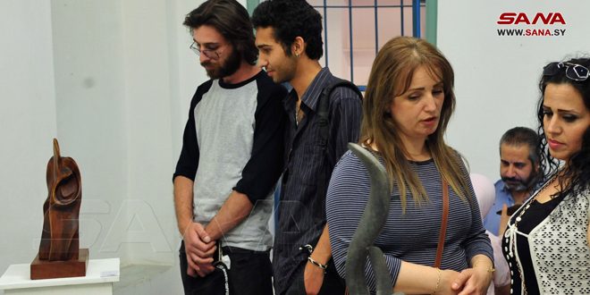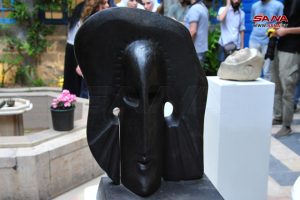 من جهته أكد الفنان التشكيلي أكثم عبد الحميد خصوصية فن النحت الذي يأتي من مخزون الفنان الفكري حيث عليه إنهاء عمله في مخيلته قبل أن يبدأ بعملية النحت، مبيناً استخدامه مادة البازلت في عمله لإظهار المعادن على سطحها بعد انتهائه من نحتها والذي تمثل بالإنسان الحالم في لحظة صفاء.