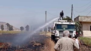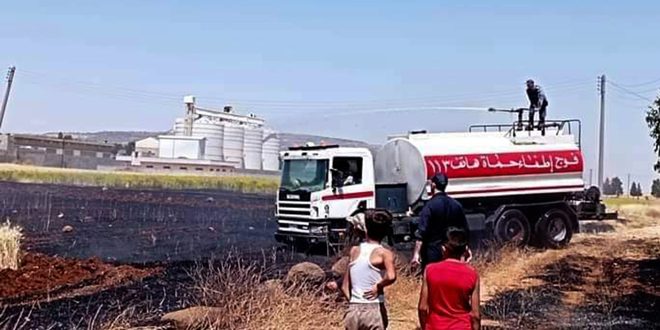 أخمد عناصر فوج إطفاء حماة بالتعاون مع الأهالي حريقاً اندلع ضمن الأراضي الزراعية وحقول القمح في مزارع العلمين بقرية غور العاصي في ريف حماة الجنوبي.