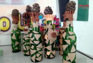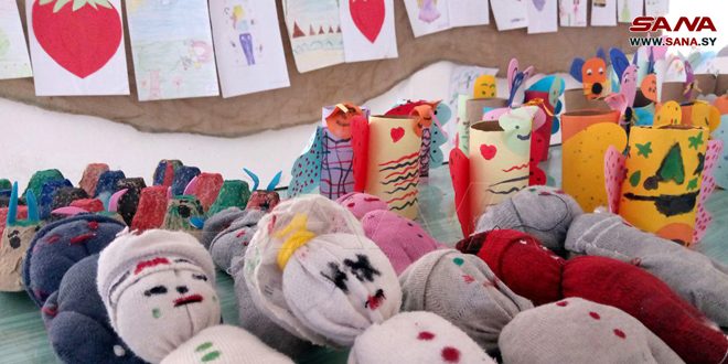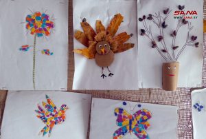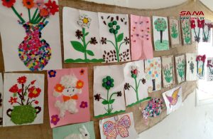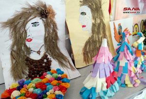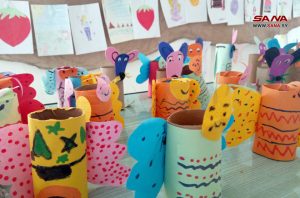 ومن الأطفال المشاركين، الطفلة يارا صالح 10 سنوات، والطفلة ريم أحمد المشاركتان بأعمال يدوية من الكرتون والورق على شكل حيوانات، أما الطفلة تالا غانم فتهتم برسم الطبيعة والوجوه بألوان زاهية.