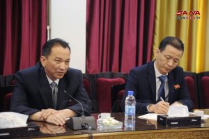 من جهته أكد ريونغ تميز ومتانة العلاقات التاريخية بين البلدين، ودعم بلاده المطلق والثابت لسيادة سورية وأمنها واستقرارها، مشدداً على ضرورة توطيد العلاقات بين البلدين الصديقين في كافة المجالات وخاصة الاقتصادية منها.