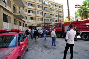 وفور اندلاع الحريق توجهت زمرة من فوج إطفاء دمشق إلى المكان، وعملت على إخماد الحريق وتبريده، بينما تم إسعاف الطالبات المصابات إلى مشفى المواساة الجامعي.