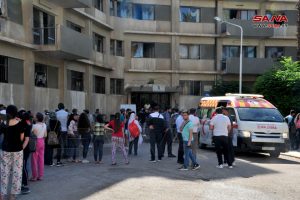 وفي تصريح لمراسلة سانا أكد مدير مشفى المواساة الجامعي الدكتور عصام الأمين وصول 13 إصابة من المدينة الجامعية إلى قسم الإسعاف بالمشفى، منها 12 حالة اختناق بسيط نتيجة استنشاق أبخرة ودخان، وحالة واحدة بحروق ووضعها مستقر.
