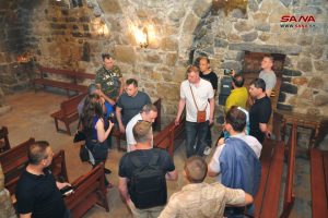 وأبدى الوفد الضيف إعجابه بما تضمه الكنيسة والجامع من معالم تلخص تاريخ الحضارة السورية، وتآلف الشعب السوري بجميع مكوناته.