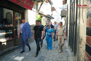 زار وفد روسي من اتحاد النساء الأرثوذكسيات اليوم كنيسة القديس حنانيا الأثرية، والجامع الأموي بدمشق.
