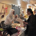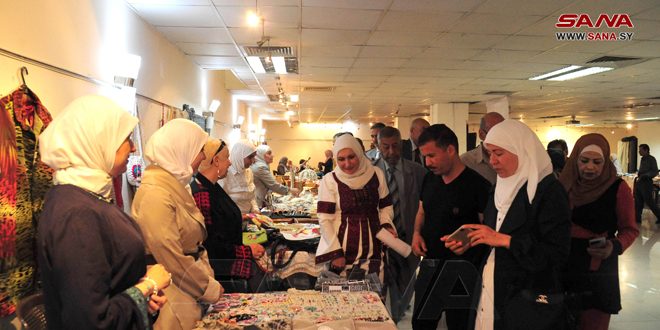 وأضافت الخضراء: نعرض اليوم بعض المنتجات اليدوية التي عرفت على أرض فلسطين، والحرف اليدوية كأعمال الصنارة والصنارتين والزخرفة والحفر على الخشب وتطعيم الخشب بالصدف، والنقش على النحاس وفنون الخياطة النسائية المنزلية وفن صناعة المكرميات وشك الخرز على النول وفنون التطريز الفلسطيني على القماش، وصناعة مستحضرات التجميل من النباتات الشامية المعروفة في فلسطين، وفنون الرسم على الزجاج وصناعة الدمى القماشية، كما عرضت بعض الحلويات الفلسطينية كالكعك الفلسطيني.