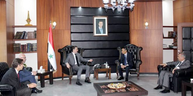 بحث وزير الشؤون الاجتماعية والعمل لؤي المنجد اليوم مع الممثل المقيم لمنظمة “اليونيسف” في سورية ياسو ماساكيمورا البرامج والمشاريع ذات الاهتمام المشترك وسبل تطويرها.