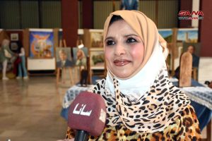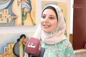 وقالت المهندسة علياء ريحاوي: إنها قدمت ثلاث لوحات تناولت فيها المرأة أثناء الحرب والزلزال، ومفهوم الأمل والعودة إلى الوطن.
