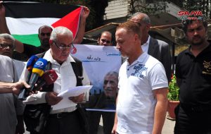أقامت الجبهة الشعبية لتحرير فلسطين ولجان الدفاع عن الأسرى والمعتقلين الفلسطينيين داخل معتقلات الاحتلال الإسرائيلي وقفة تضامنية أمام مقر الأمم المتحدة بدمشق،للمطالبة بالإفراج عن الأسير الفلسطيني وليد دقة، وتنظيم زيارات للأسرى الذين يعانون من أمراض خطرة في معتقلات الاحتلال.