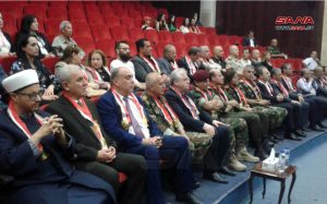 وفي كلمة ذوي الشهداء، أعرب الأب محمود العوابدة راعي كنيسة القريا للروم الأرثوذكس عن التقدير لكل من يسهم في تكريم الشهداء وذويهم والذين “بذلوا أغلى التضحيات من أجل أن يبقى الوطن شامخاً.. فكانوا السور المنيع لحماية ترابه والدفاع عن سورية الواحدة الجامعة لكل أبنائها المتحابين والمتعاضدين في وجه ما تتعرض له من تهديدات كتفاً على كتف مع الجيش العربي السوري الذي ضرب المثل في الشجاعة والإقدام والتضحية”.