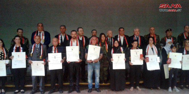 كرمت محافظة السويداء بالتعاون مع مديرية شؤون الشهداء والجرحى والمفقودين في وزارة الدفاع 31 أسرة من ذوي شهداء الجيش العربي السوري، وقلدتهم أوسمة الإخلاص، وذلك ضمن احتفالية استضافها قصر الثقافة بالمدينة.