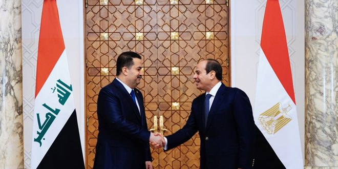 بحث الرئيس المصري عبد الفتاح السيسي ورئيس الوزراء العراقي محمد شياع السوداني العلاقات بين البلدين الشقيقين، وسبل الارتقاء بالتعاون الثنائي بينهما في مختلف الأوجه، ولا سيما الأمني والتبادل التجاري والاستثمارات.