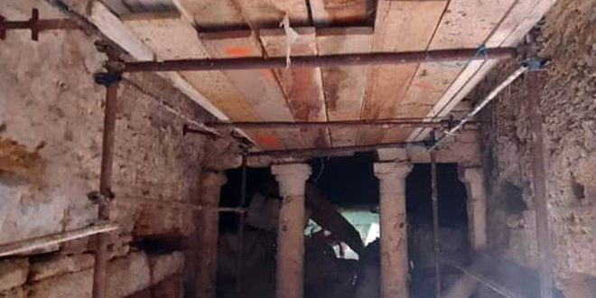 وأثر على البقايا المعمارية في الموقع، وخاصة مدفن أبو عفصة الأرضي المكتشف بعام 2003 إلى جانب القيام بأعمال إسعافية داخله.