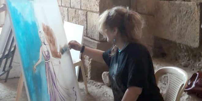 وأوضحت التشكيلية يسرا ديب أنها تعبر في أعمالها عن جبلة الحقيقية رمز الجمال رغم كل الظروف والكوارث والنكبات فالمرأة في عملها قامت من الزلزال بكامل أنوثتها وزينتها وجمالها كما تعبر أيضاً عن العمق الحضاري لجبلة الفينيقية التي كانت حضارتها تمثل البحر والبر لافتة إلى أهمية هذا الملتقى لما يبثه من طاقة إبداعية انطلاقاً من مقولة الفن بالعدوى إضافة إلى أن الرسم بالمدرج الذي يرمز إلى الحضارة التي بدأت من هنا وهذه الحضارة تنتقل طاقتها للفنان وتحرض الإبداع والأفكار المميزة.