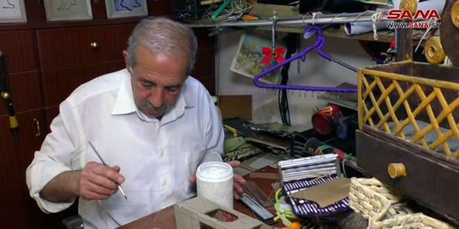 وأوضح سمير لـ سانا أن أعماله تشكل جزءاً من روحه يحول من خلالها العيدان والأوراق إلى تحف فنية تنبض بروح دمشق وتعبر عن تفاصيل من حياته اليومية، مبيناً أن هذا العمل يعطيه الدافع للاستمرارية.