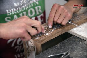 تصنيع الصدفيات على الخشب من اختصاص الحرفي حسن عساني الذي قال: “ما يميز هذه الحرفة أنها تصنع يدوياً، وتحتاج الى الصبر والدقة والإبداع”، لافتاً إلى أن أهم أشكال الحفر المعتمدة الوردة الشامية والياسمينة، وحالياً تم تطوير وتوسيع الرسم ليشمل زهوراً ونباتات وأشكالاً هندسية إضافية.