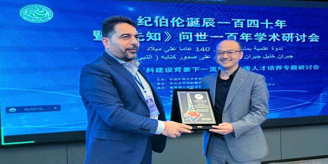 قدم رئيس اتحاد الكتاب العرب في سورية الدكتور محمد الحوراني درع الاتحاد للباحث والبروفيسور الصيني سعيد ما يان جه، تقديراً لجهوده في تعليم اللغة العربية للطلاب الصينيين وغيرهم في جامعة “صون يات سان” في مدينة “جوهاي” الصينية.