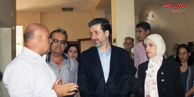 وفي مدينة بانياس، اطلع الوزير على آلية العمل في مشفى البر التابع لجمعية البر والخدمات الاجتماعية، واستمع من القائمين عليه لشرح مفصل عن الخدمات المقدمة والتي تعتبر شبه مجانية وخاصة ذوي الشهداء والجرحى والأسر المحتاجة.