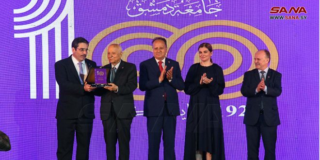 بحضور رسمي وثقافي وأكاديمي وطلابي واسع أقامت جامعة دمشق على مدرجها مساء اليوم احتفالية بمناسبة الذكرى المئوية لتأسيسها، كرمت خلالها كوكبة من خريجيها البارزين في مجالات العلم والفن والأدب.