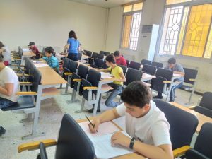 وجرت الاختبارات بالتوقيت نفسه في المراكز المحددة ضمن الجامعات في المحافظات، حيث تضمنت أسئلة تهدف إلى قياس مهارات التحليل المنطقي والتفكير الرياضي عند الطلاب ضمن مفاهيم علمية مستوحاة من المحاور المحددة.