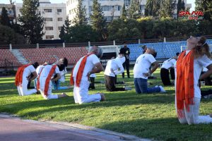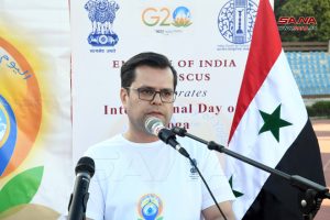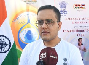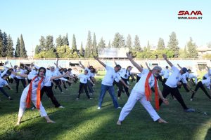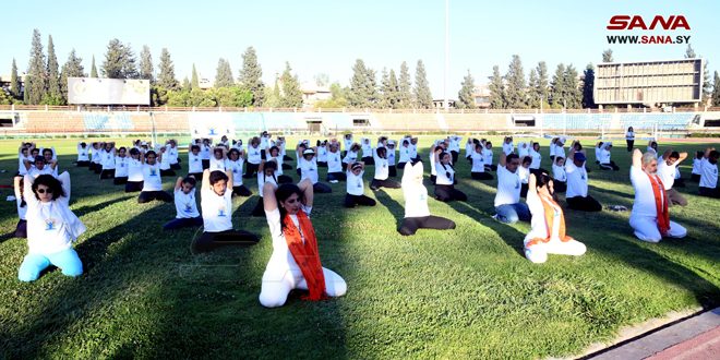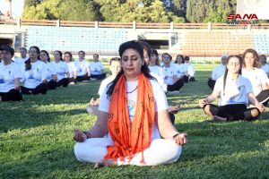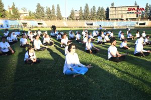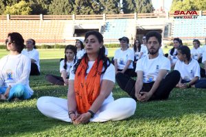 في إطار الفعاليات التي تقيمها السفارة الهندية في دمشق بمناسبة اليوم العالمي لليوغا الذي يصادف الـ 21 من حزيران من كل عام، نظمت اليوم بالتعاون مع مركز عائلة اليوغا مهرجاناً لرياضة اليوغا في صالة تشرين بدمشق.