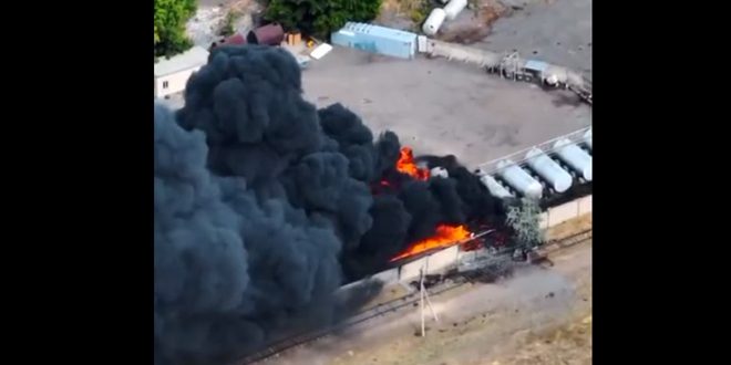ونقلت سبوتنيك عن السلطات المحلية قولها: إن 4 أطقم إطفاء هرعت إلى منطقة الحادث لإخماد الحريق، بينما قال شهود عيان: إن صهريجي نفط انفجرا في مكان الحادث، وقد شوهدت وفقاً لما نشر من مقاطع فيديو على تليغرام سيارات تحترق في موقع حريق كبير.