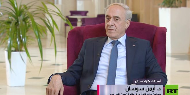 وقال سوسان في مقابلة مع قناة روسيا اليوم على هامش مشاركته في الاجتماع الدولي الـ 20 حول سورية بصيغة أستانا المنعقد في العاصمة الكازاخية: إن اجتماعات أستانا حققت إنجازات مهمة على صعيد تقليص مساحة الإرهاب في سورية، وبشكل أساسي في مناطق خفض التصعيد الثلاث، أما في المنطقة الرابعة فكان من الممكن أن يكون هناك نصيب من النجاح لولا مواقف أحد الضامنين وأقصد تركيا التي كانت وما تزال تقدم الدعم والرعاية للمجموعات الإرهابية الموجودة في منطقة خفض التصعيد في إدلب.