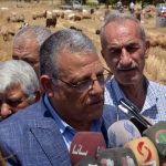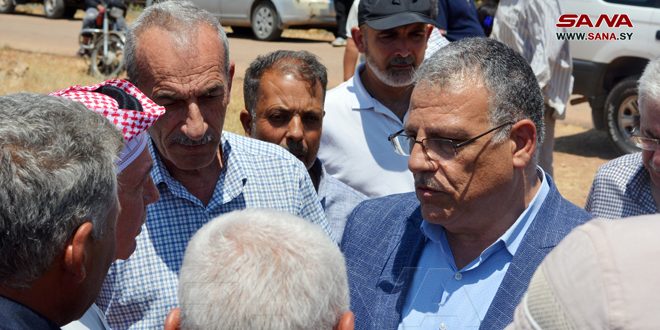 وقال وزير الزراعة في تصريح للصحفيين: إن زراعة القمح تتركز في المنطقة الوسطى والشمالية الشرقية من سورية، وتهدف الجولة اليوم للاطلاع على واقع الإنتاج والمعدلات والتحقق مع الفلاحين من المشاكل التي تواجههم خلال الحصاد والتسويق.