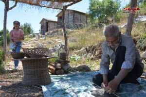 وتحت خيمة من القصب افترش شحادة عنيد من أبناء حبنمرة بعض ما حاكته يداه من أطباق وطاولات وأوان متنوعة من أعواد الريحان يصوغها بكل مهارة، وقال: “أستمتع بالعمل في أجواء الطبيعة، وأشعر بالارتياح”.
