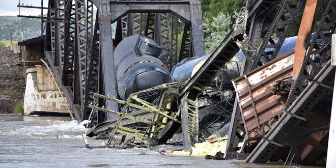 أدى انهيار جسر فوق نهر يلوستون بولاية مونتانا الأمريكية إلى سقوط قطار محمل بمواد خطيرة في النهر.