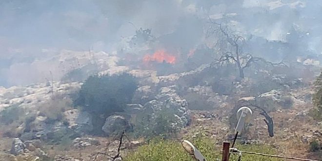أصيب فلسطيني واشتعلت النيران في مساحات من الأراضي الزراعية اليوم، جراء اعتداءات مستوطنين إسرائيليين على بلدتي الزاوية غرب مدينة سلفيت وترمسعيا شمال مدينة رام الله في الضفة الغربية.