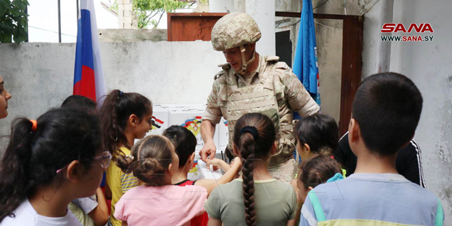 وزع مركز التنسيق الروسي في سورية اليوم مساعدات إنسانية في قرية المغريط بريف اللاذقية.