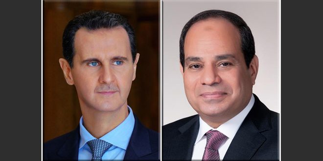 تلقى السيد الرئيس بشار الأسد اتصالاً هاتفياً من رئيس جمهورية مصر العربية عبد الفتاح السيسي، هنأه فيه بمناسبة حلول عيد الأضحى المبارك، معرباً عن خالص تمنياته لسورية وشعبها بالخير والازدهار.