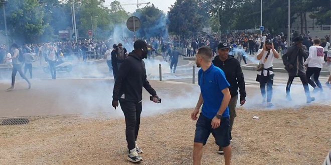أطلقت الشرطة الفرنسية مساء اليوم الغاز المسيل للدموع لتفريق متظاهرين تجمعوا احتجاجاً على مقتل فتى يبلغ من العمر 17 عاماً برصاص الشرطة في ضاحية نانتير.