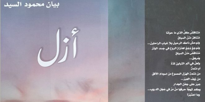 اقتصرت المجموعة الشعرية الجديدة (أزل) للشاعر الدكتور بيان محمود السيد، على الشعر الموزون والالتزام بالروي والمواضيع التي تعكس انفعالاً وجدانياً صادقاً.