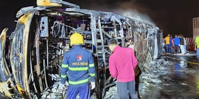 لقي ما لا يقل عن 25 شخصاً حتفهم وأصيب ثمانية آخرون بجروح جراء اندلاع حريق بحافلة في ولاية ماهاراشترا وسط الهند.