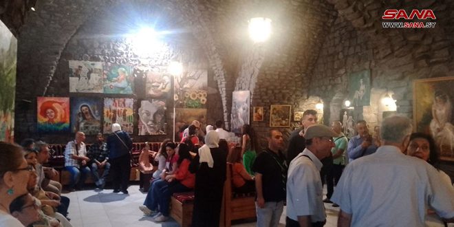 قدم 45 فناناً تشكيلياً من مختلف المحافظات نتاجهم الفني ضمن معرض مشترك في الصالة الأثرية بكاتدرائية الروح القدس في المدينة القديمة بحمص.