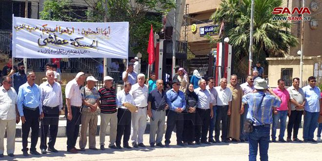 نظم أبناء مدينة الحسكة اليوم وقفة احتجاجية رفضاً لاستمرار انتهاكات المحتل التركي واستمرار جريمته الإنسانية بحق مليون مواطن مهددين بالعطش جراء قطعه لمياه الشرب والتحكم بضخ المياه من محطة علوك المصدر الوحيد لمياه الشرب.