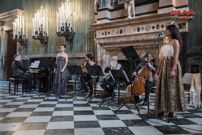الموسيقيون الذين حرصوا على ارتداء البروكار الدمشقي الذي يعد من الحرف السورية العريقة قدموا مقطوعات موسيقية متنوعة منها “غنية إيرلندية تقليدية” وميدلي “أغاني فيروز” وموشح “لما بدا يتثنى” و أغنية أعطني الناي وغني.