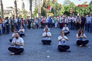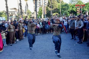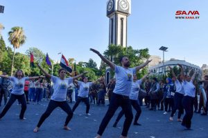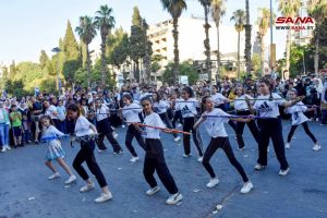 الماراثون الذي تنظمه شركة موصلي للمعارض بالتعاون مع فعاليات تجارية وصناعية وجمعيات أهلية تضمن في يومه الأول فقرة اليوغا لفريق هبة التطوعي وعرضاً تراثياً لفرقة الفرسان للعراضة الحمصية وفقرة دبكة قدمتها فرقة زهرة المدائن للفنون الشعبية وعروض جمباز وعرض فني راقص لأطفال جمعية رعاية الطفل وفقرة عزف موسيقا لأطفال طلائع البعث.