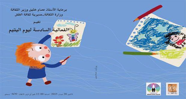 تقيم وزارة الثقافة “مديرية ثقافة الطفل عند الثانية عشرة ظهر الاثنين المقبل الفعالية السادسة ليوم اليتيم وذلك في قرى الأطفال “اس او اس” بدمشق.