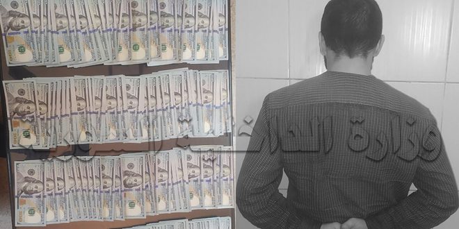 ألقى فرع الأمن الجنائي في دمشق القبض على أحد مروجي العملات الأجنبية المزورة، وضبط بحوزته مبلغ ( 30 ) ألف دولار أمريكي مزور.