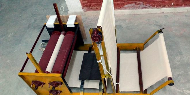بهدف تحسين آلية لف الأقمشة وكشف عيوبها بعد نسجها وتحقيق جودة الإنتاج، صمم عدد من طلاب كلية الهندسة الميكانيكية والكهربائية-قسم هندسة ميكانيك الصناعات النسيجية وتقاناتها بجامعة دمشق نموذجا لآلية لف القماش المنسوج مع تقنية كشف العيوب.