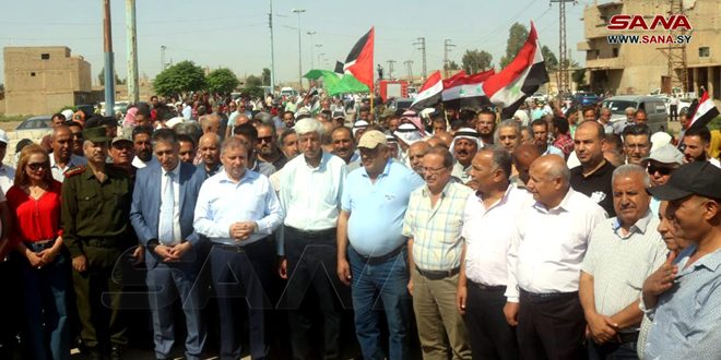 عبد العزيز الذياب من أهالي ريف المحافظة الشمالي، قال في تصريح لمراسل سانا: إن الوقفة اليوم رسالة للمحتل الأمريكي مفادها بأن الأرض السورية أرض عزيزة ولم يستمر فيها محتل أو طامع، فكل الغزاة والمحتلين خرجوا مهزومين مذلولين.. وستسقط كل مخططات الاحتلال الرامية لتقسيم الأرض وتفرقة أبنائه.
